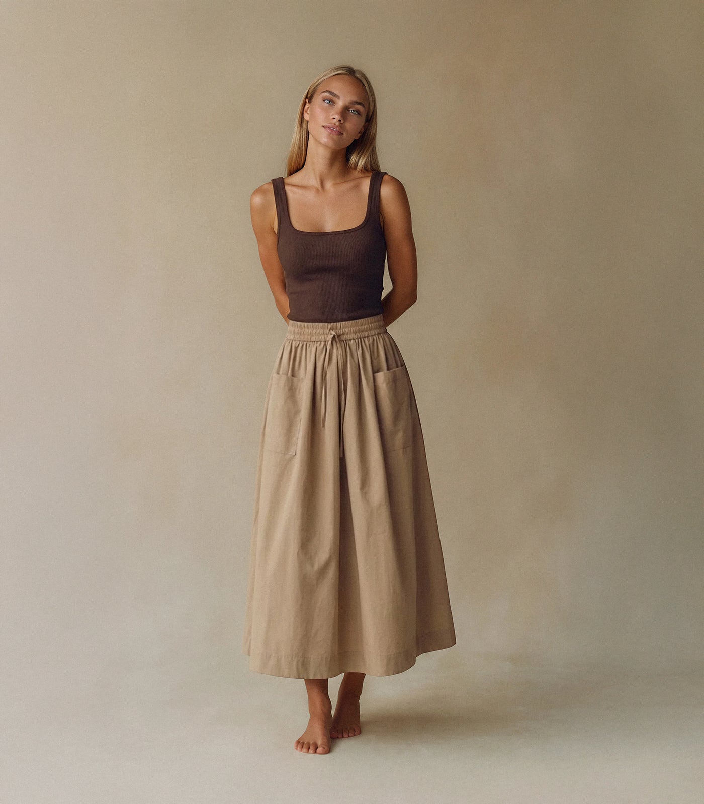 Blusa lisa con cinta en cuello
