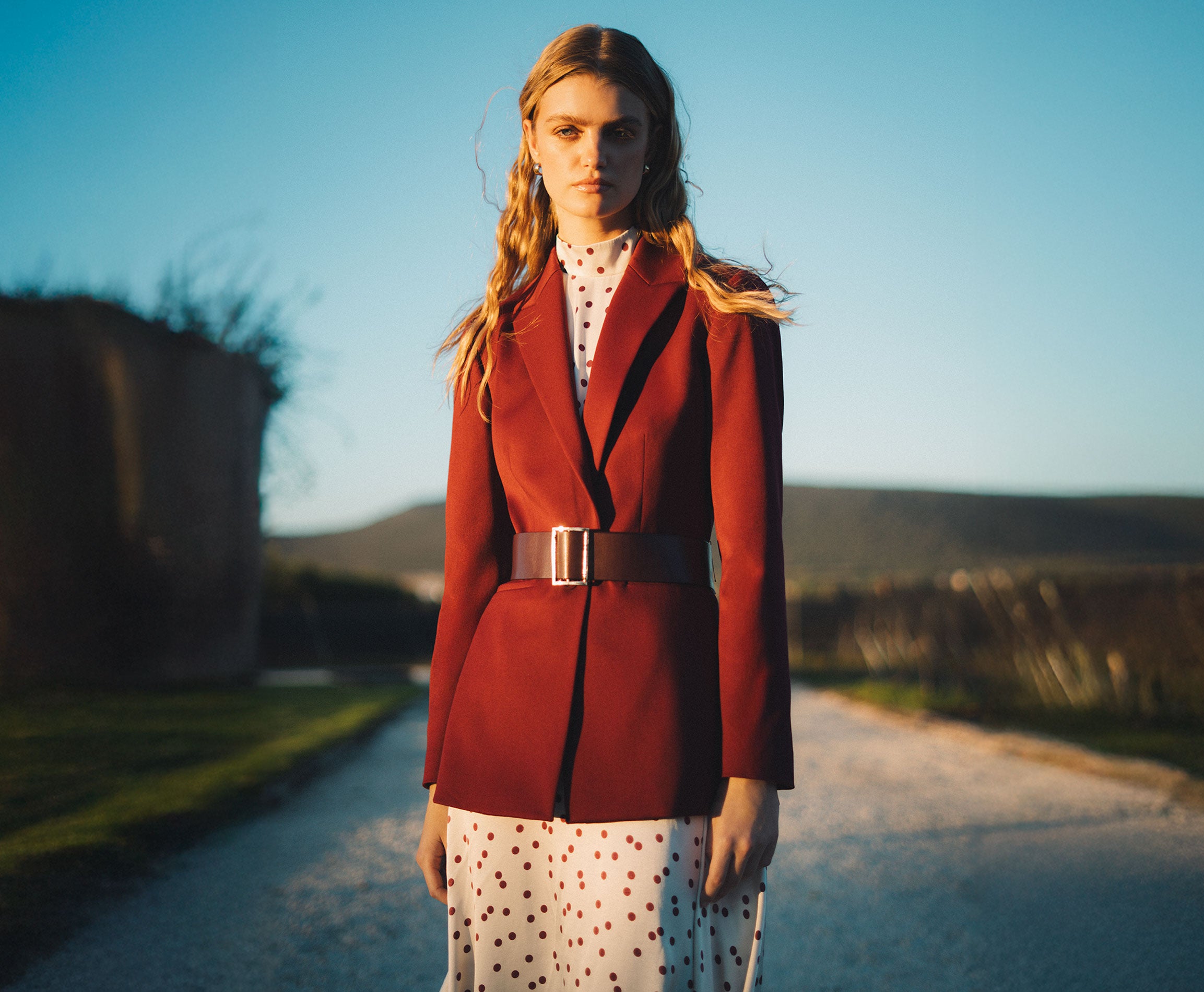 Vestido midi lunares con cinturon