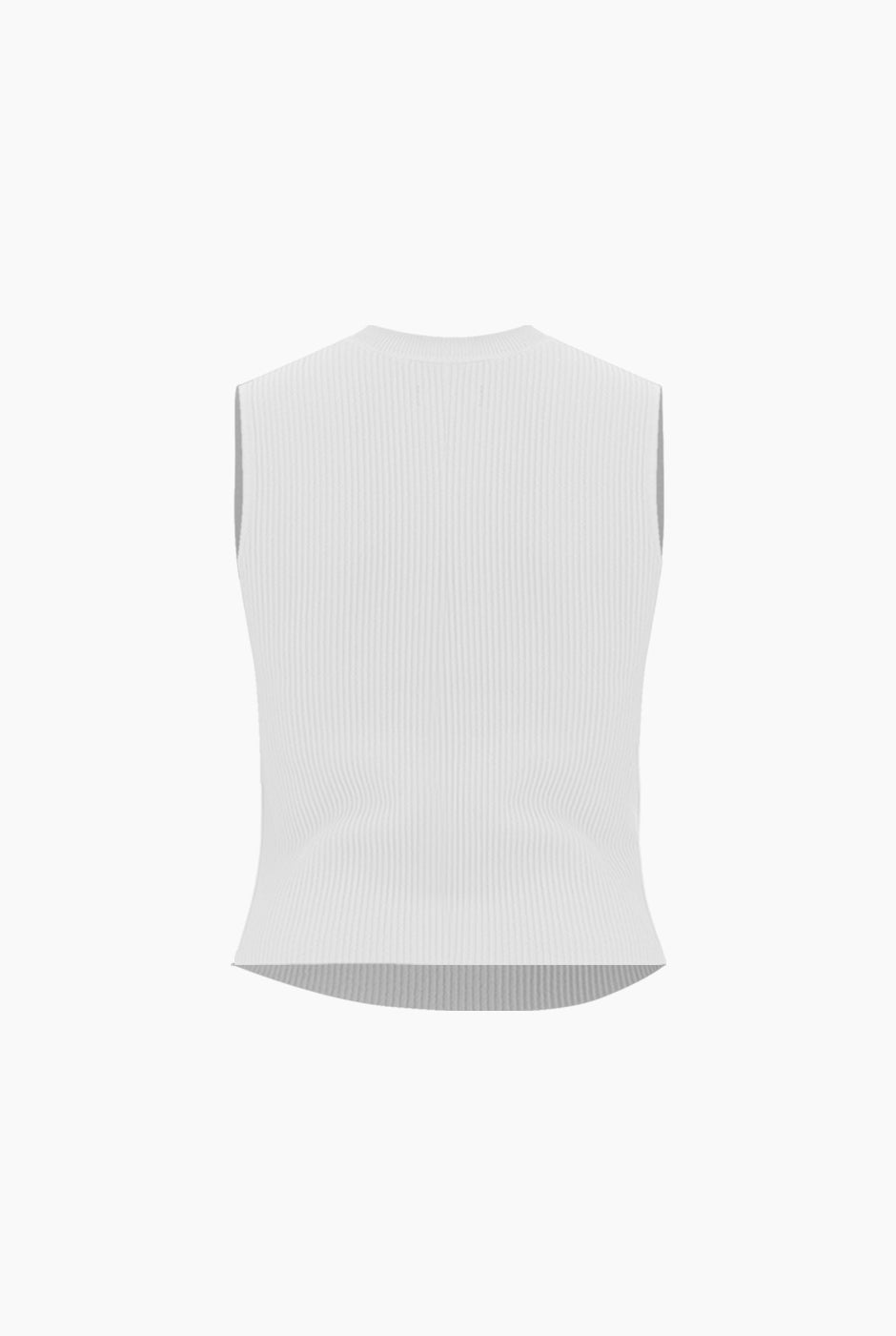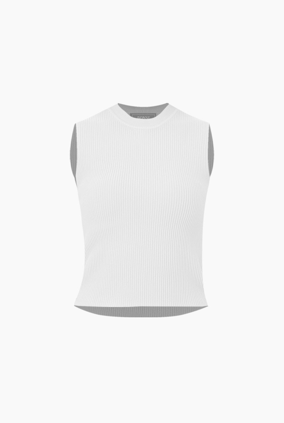 Top acanalado en color hueso sin mangas, con cuello redondo y silueta entallada.